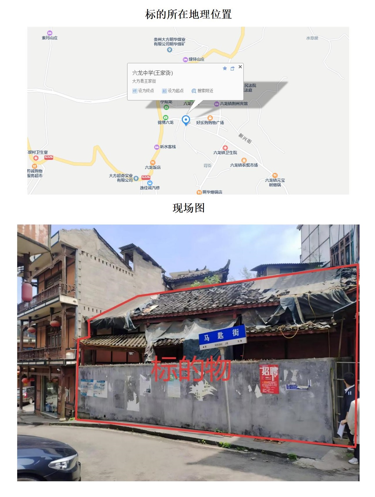 2、六龍道班房,建筑面積:95.43㎡,土地面積:96.67㎡,起拍價:8.87萬元,競買保證金:1萬元。