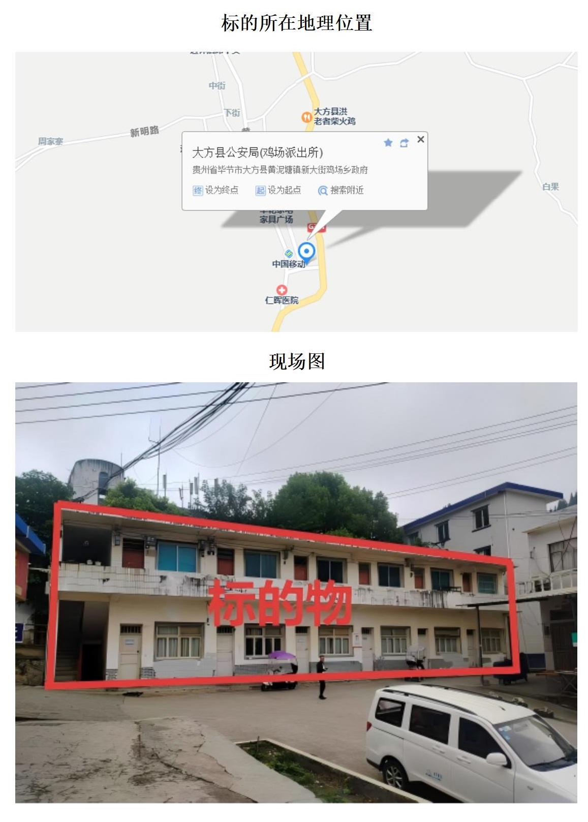 標(biāo)的位于大方縣長石鎮(zhèn)長青小學(xué)。建筑面積:658.09㎡,土地面積:2322.48㎡,建筑結(jié)構(gòu)為混合結(jié)構(gòu),共2棟,總層數(shù)分別為3層和1層,房屋用途為住宅,土地性質(zhì)為劃撥。